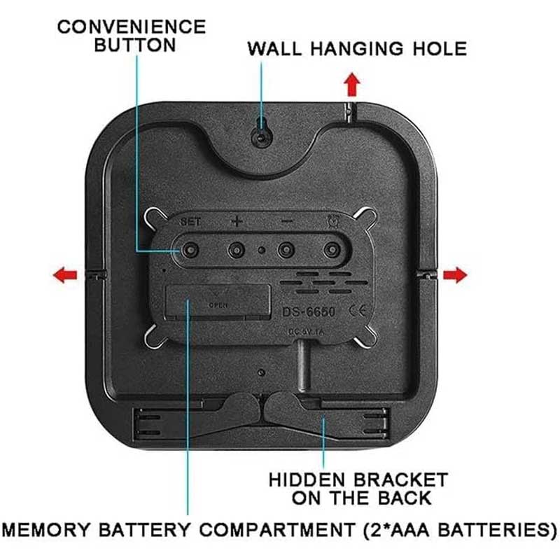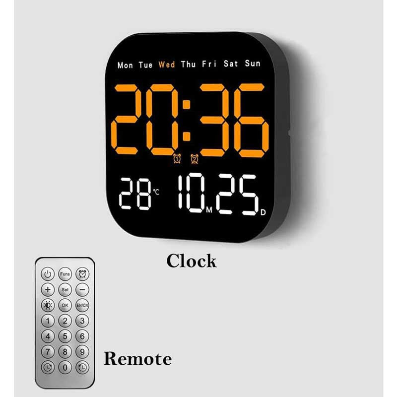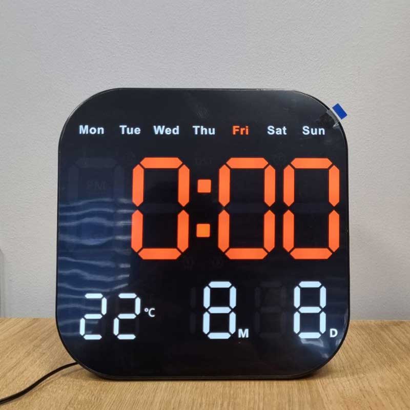ساعت دیجیتال دیواری و رومیزی با طراحی مدرن و کلاسیک است. صفحه LED بزرگ و واضح آن زمان، تاریخ، روز هفته و دمای محیط را نمایش میدهد و همراه آلارم و تایمر ، گزینهای ایدهآل برای افراد است. روشنایی نمایشگر در ۱۰ سطح قابل تنظیم است و کنترل کامل ساعت با ریموت فراهم شده است. این ساعت، هم بصورت رومیزی و هم دیواری قابل استفاده است و با برق مستقیم کار میکند؛ البته باتری برای حفظ تنظیمات ساعت هنگام قطع برق استفاده میشود. با طراحی شیک و رنگ مشکی، علاوه بر کاربردی بودن، یک دکوری جذاب و مدرن برای منزل یا دفتر کار شماست. برای دیدن سایر مدلهای ساعت دیجیتال روی ساعت دیجیتال کلیک کنید.