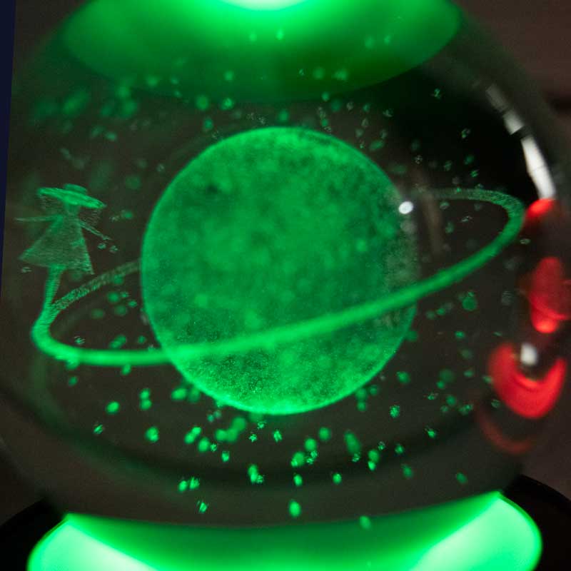 یک چراغخواب جذاب با طراحی زیبا و شیک که میتونه دکور شما رو زینت بده و یک هدیه عالی هم میتونه باشه. این چراغ خواب با پایه مشکی و طراحی مدرن می تواند میز و کتابخانه شما را جذابتر کند. این چراغ خواب عموما طرحهای فضایی زیبایی دارد. این طرح ماه و دختر یکی از جذابترین و پرفروشترین طرحهاست.