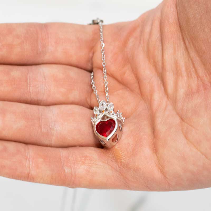 یک گردنبند زیبا با طرح قلب تاجدار که به گردنبند راپونزل نیز معروف است. دلیل این معروفیت هم تاج زیبای بالای قلب است که به تاج پرنسس راپونزل شبیه است. برای دیدن سایر گردنبندهای قلبی روی گردنبند قلبی کلیک کنید.